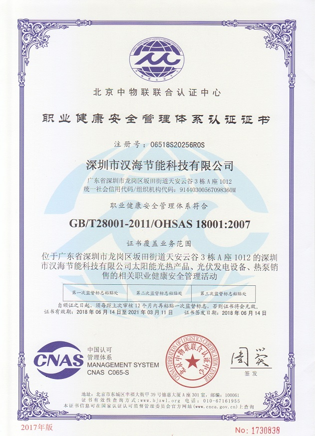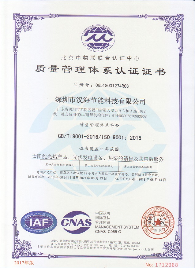 深圳市漢海節(jié)能科技有限公司成立于2011年,注冊資金6000萬元,總部設在深圳,是一家集設計、研發(fā)、施工于一體的專業(yè)化從事太陽能中央熱水工程、熱泵中央熱水工程、中央空調、光伏發(fā)電、水處理等新能源及節(jié)能環(huán)保行業(yè)的綜合服務商和工程商。在將近10年的發(fā)展歷程中,始終走在行業(yè)發(fā)展的前沿,是專業(yè)從事太陽能光熱、光伏,空氣源、太陽能熱水工程、水源熱泵,中央空調,水處理產品的設計、安裝、售后服務為一體的高新技術企業(yè);是專業(yè)提供太陽能中央熱水工程、熱泵中央熱水工程、中央空調工程、光伏發(fā)電工程、水處理工程、太陽能熱水工程等全面解決方案的供應商和工程商,產品涵蓋太陽能集熱器、空氣源熱泵、水源熱泵、中央空調、光伏組件、太陽能熱水工程等,是新能源的倡導者和推動者。公司成立以來,始終秉承“誠信、責任、專業(yè)、高效”的服務宗旨,以市場需求為導向,以為客戶創(chuàng)造價值為己任的精神,不斷開拓創(chuàng)新,通過多年的快速發(fā)展,公司綜合實力躍居行業(yè)前列。漢海擁有一支經驗豐富、善打硬仗的專業(yè)高效團隊;擁有一批專業(yè)的高級工程師、中級工程師、二級建造師、造價工程師、電氣設計師、給排水設計師;擁有一批機電、安防、水、電等專業(yè)技術施工和售后人員,配備先進齊全,實力雄厚,技術領先。漢海以質量樹信譽、以工藝立標桿、以管理創(chuàng)效益、以服務得人心,工藝水平在業(yè)界獨樹一幟,成為行業(yè)模仿的典范。漢海承建的機電工程(設計、施工)涉及星級酒店、賓館、高檔辦公樓、花園別墅、住宅小區(qū)、學校、水療中心、工廠等各種類型的工程,工程項目遍布全國各地。漢海將致力于成為全球信賴的新能源綜合服務商,為客戶提供新能源的全方位解決方案。未來,漢海將依托國家政策,積極開拓粵港澳大灣區(qū)、中國特色社會主義先行示范區(qū)市場及“一帶一路”沿線國際市場,推動新能源的新輝煌。